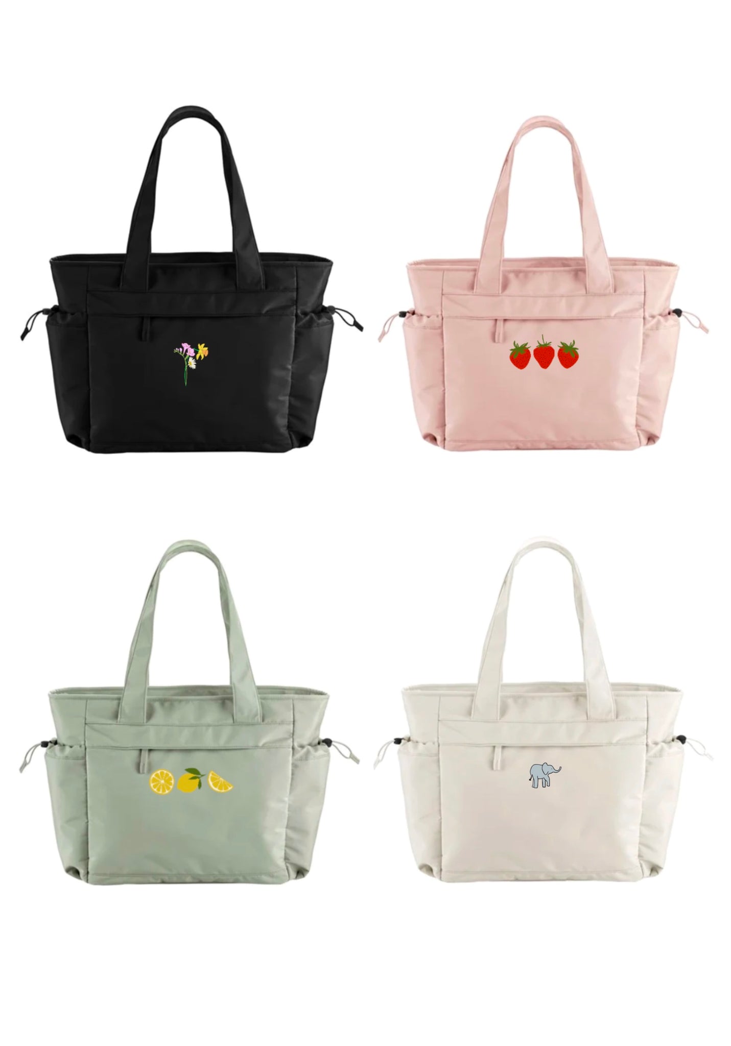 These bags are so great, perfect as a weekend away, work or gym bag! With either trio of lemons, trio of strawberries or your choice of mini embroidery from the image below. You can only choose one design for the front pocket, so one embrdoiery per bag :)