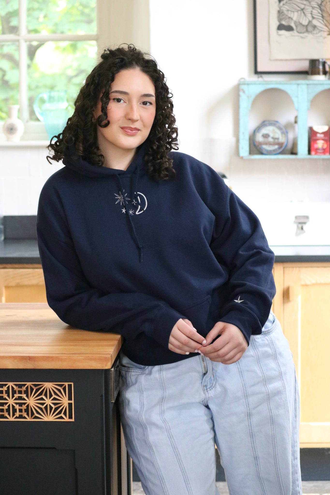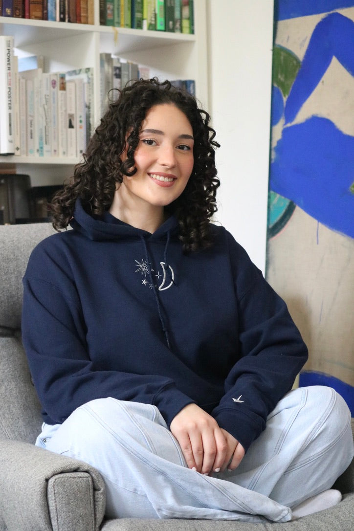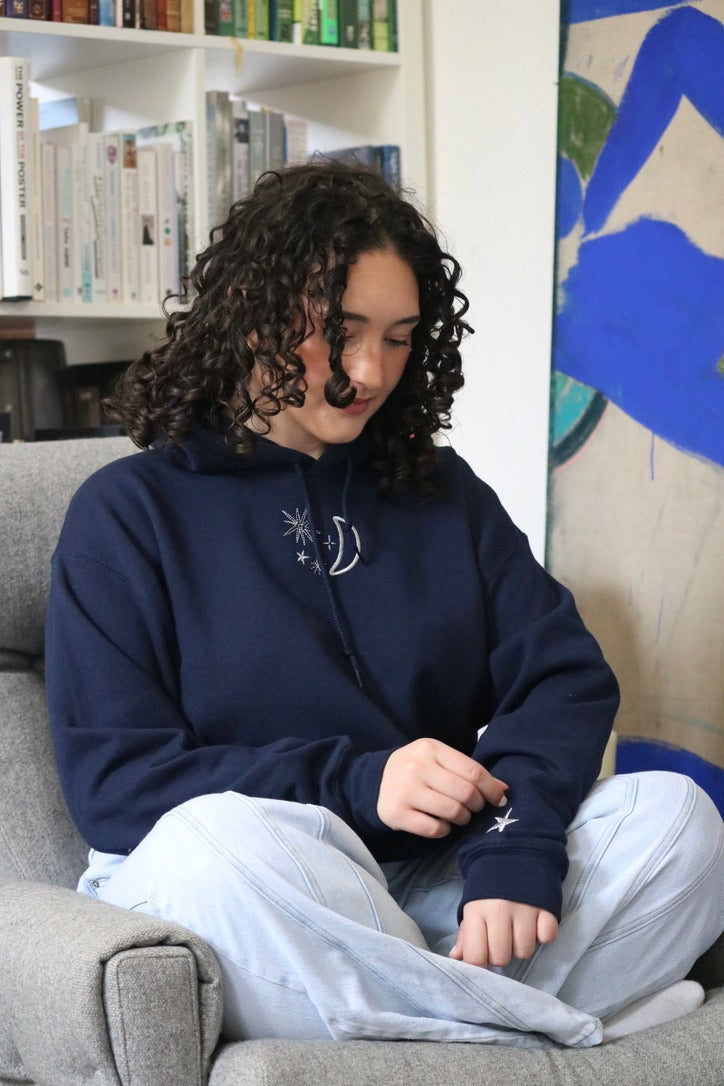 A super cute sweater perfect for gifting, featuring a star moon initial of your choice!