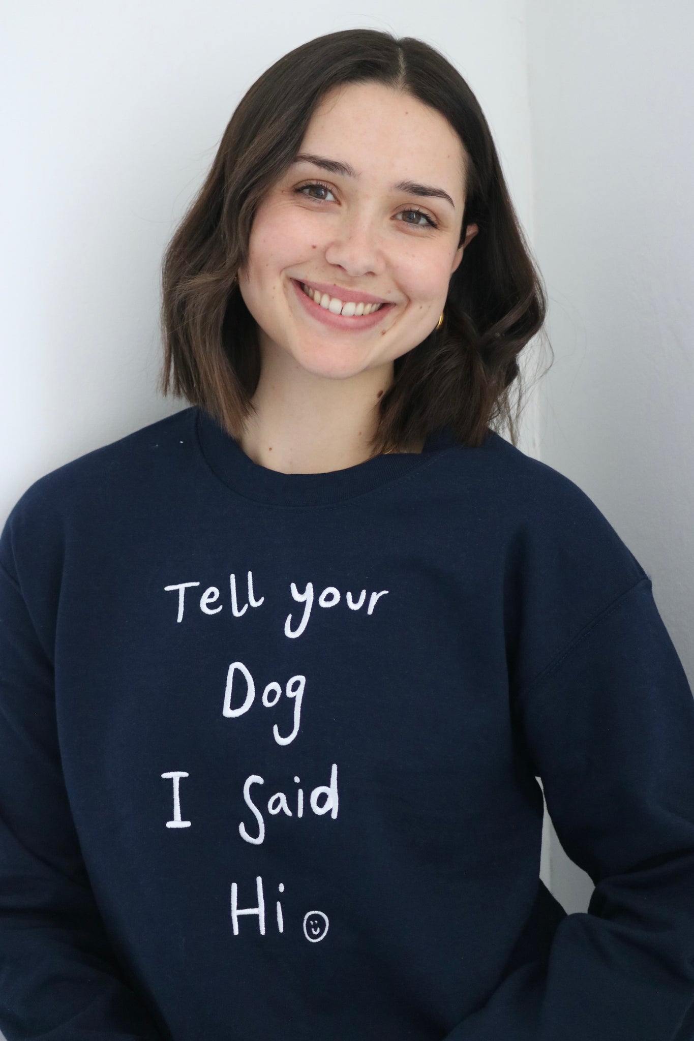 Our model Amelia is wearing a size Small sweater in Navy and Electric blue in the other photos