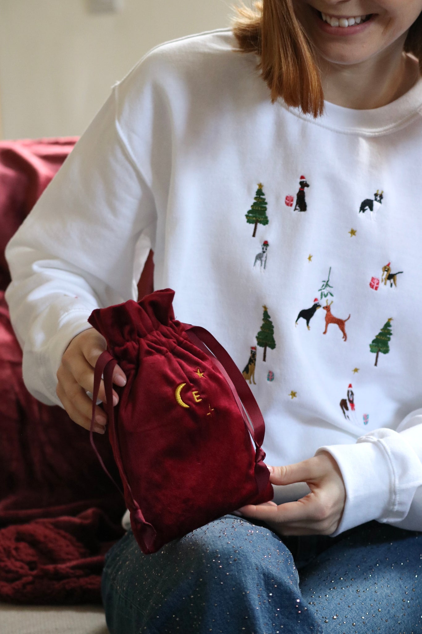 Velvet gift bag with your choice of Initial! These little gift bags would be great as an alternative to Christmas wrapping!