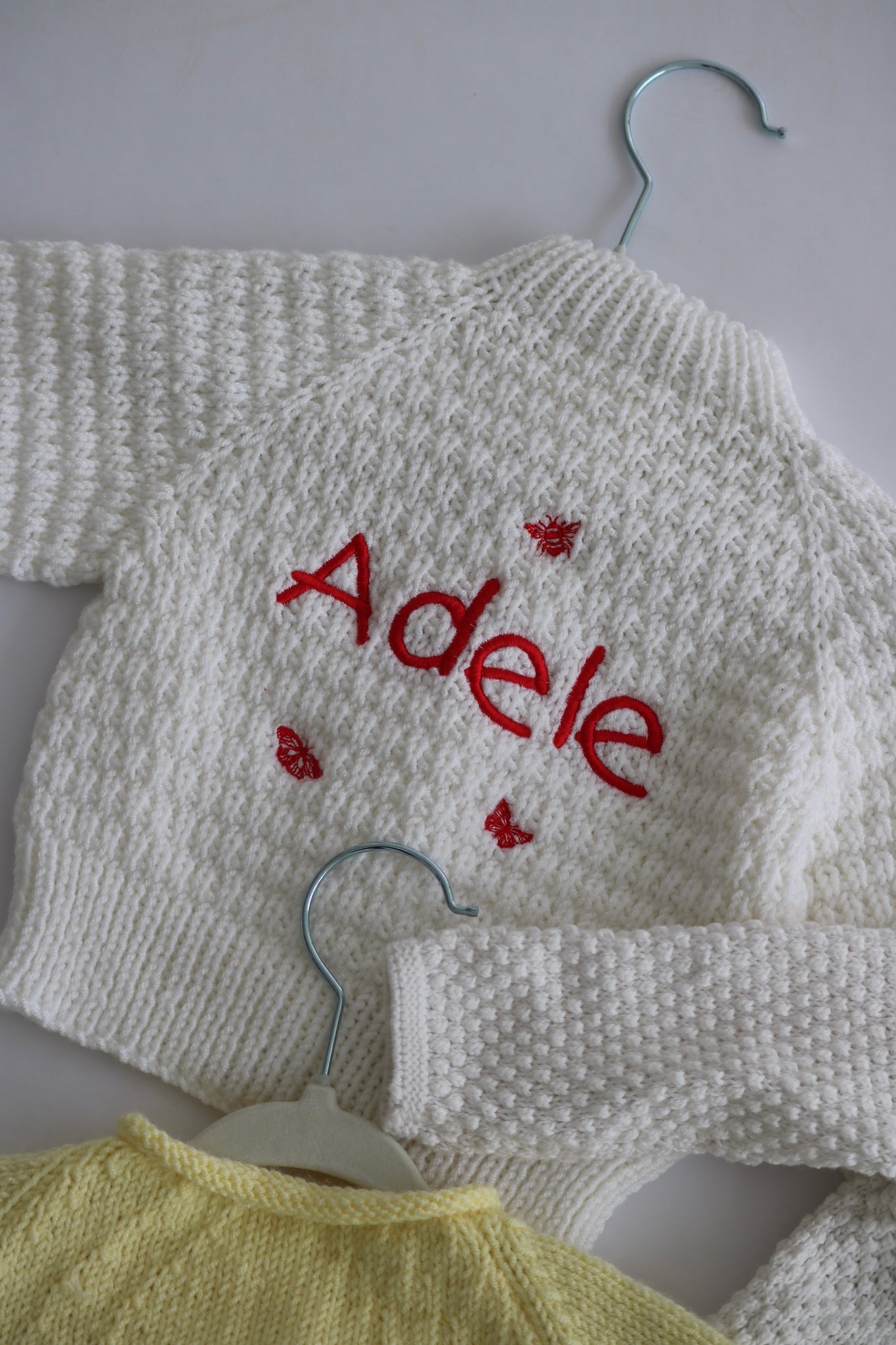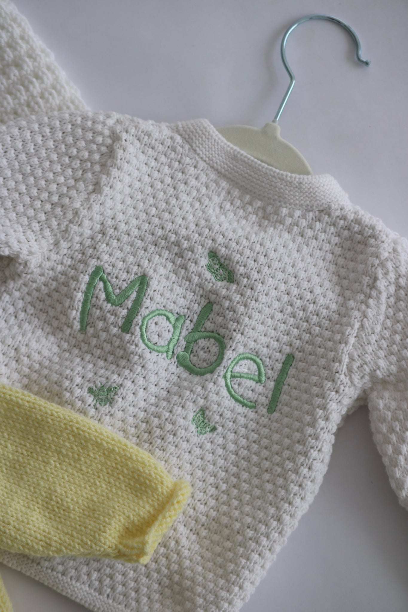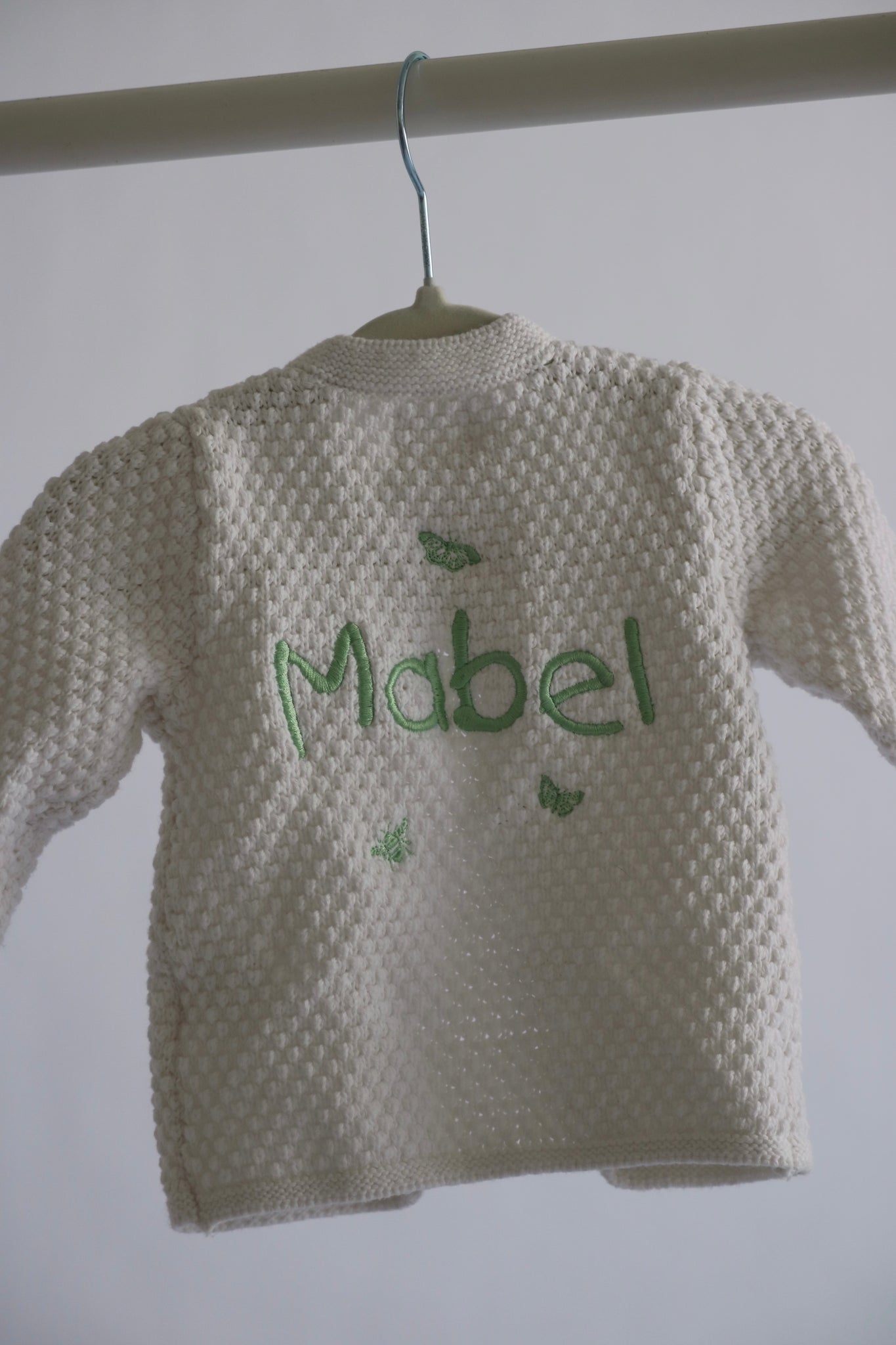 so now you can send in your own knitted cardigan for me to upcycle with baby’s name with the option to add the bee and butterflies like Effies 🐝