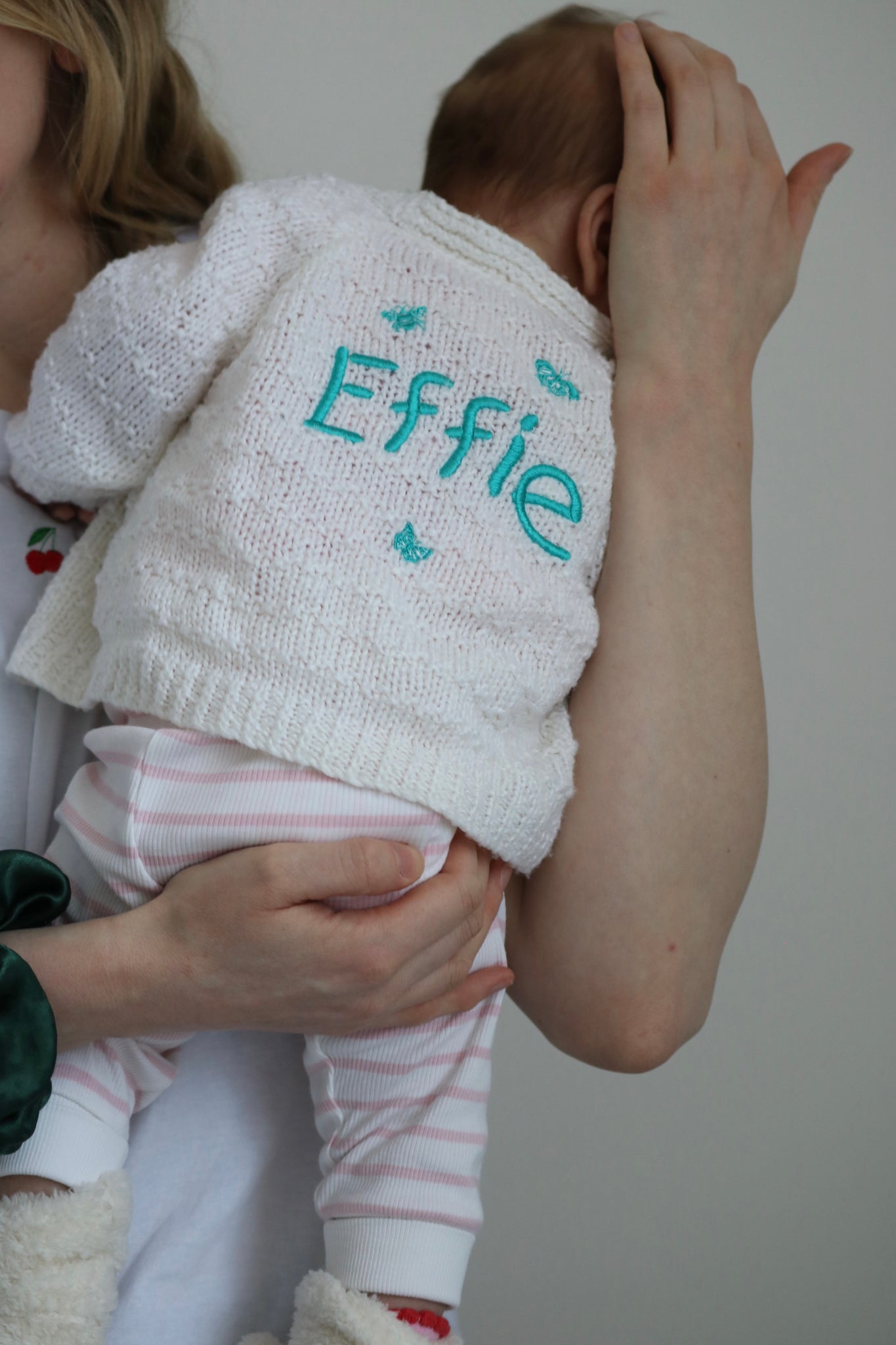When Effie was born I embroidered one of her little cardigans with her name on and you guys have been asking me to make some for you!