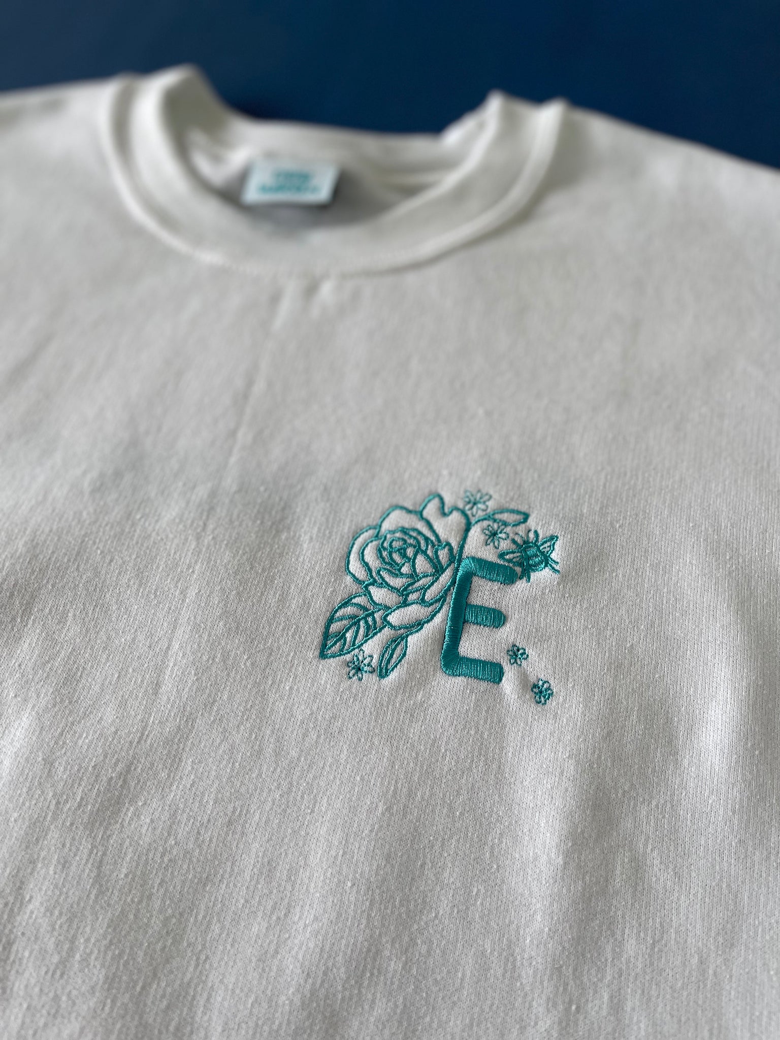 Emmas hand drawn doodles translated into stitch! Personalised initial floral bee design